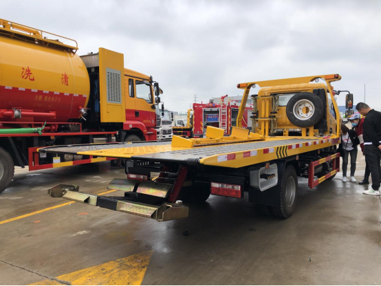 伸縮板:3噸上裝,4噸卷揚,21米鋼絲繩,3噸后拖臂,底板為花紋板(可選沖壓板),主板長4.2米,尾部液壓伸縮板,板長1.3米,雙側聯動操作,配四根捆綁帶,**小車一套,L型抱胎架一對,工具箱一個,LED工作照明燈一對,其余標配。