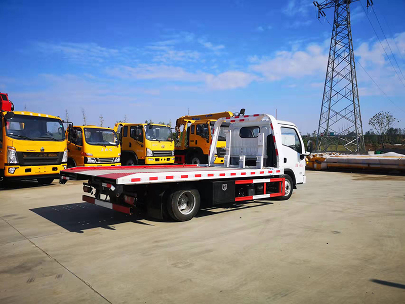 3噸上裝,4噸卷揚,21米鋼絲繩,3噸后拖臂,底板為花紋一體板(可選沖壓板),板長5.2米,雙側聯動操作,配四根捆綁帶,**小車一套,L型抱胎架一對,工具箱一個,LED工作照明燈一對,其余標配。